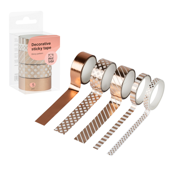 Набор клейких лент 15/7мм*3м "Shiny pattern" ассорти (уп*5шт) MS_52081 MESHU