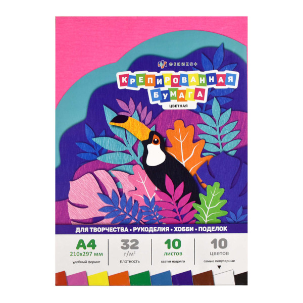 Набор бумаги крепированной А4 10л/10цв 65999 Феникс+