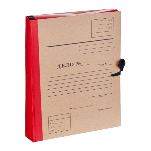 Папка архивная сборная А4, 5см, крафт/бумвинил, завязки, беж./красный "Дело" 88607 Attache