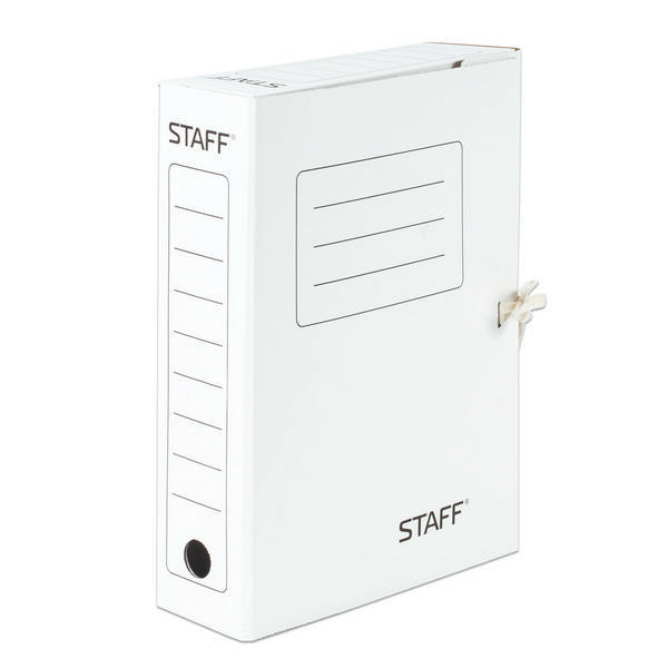 Папка архивная сборная А4, 7,5см, микрогофрокартон, завязки, белый 128869 Staff