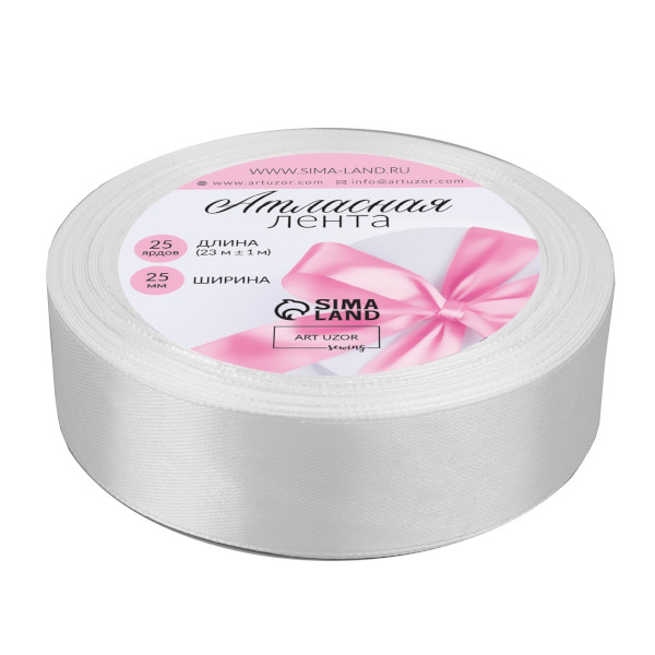 Лента атласная 25мм*23м, белый 3019760 Арт Узор