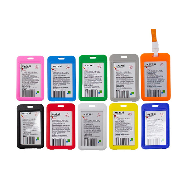 Бейдж 65*110мм вертикал., клип/шнур ассорти, пластик, ассорти "Level" M-5895 MAZARI (1шт)