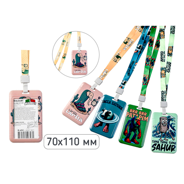 Доп. описание: Бейдж вертикальный ИТАЛ.МЕМ, 70х110мм, на шнурке, микс 4 дизай...