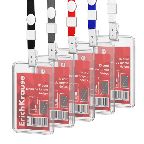 Бейдж 54*85мм вертикал., клип/шнур ассорти, пластик, ассорти 62097 Erich Krause (1шт)