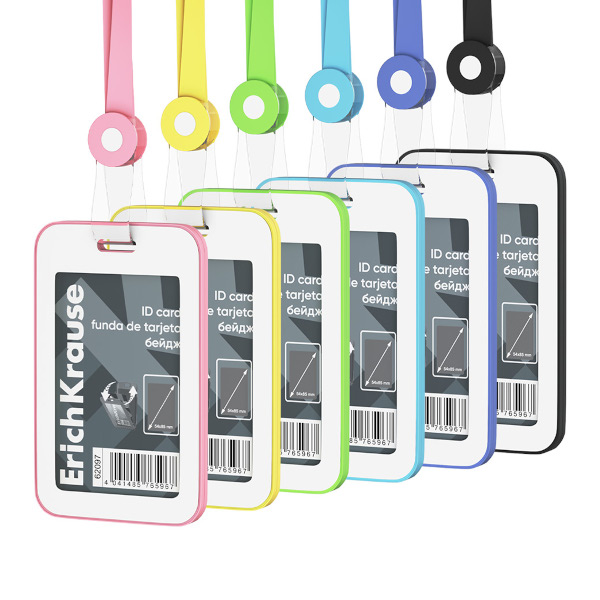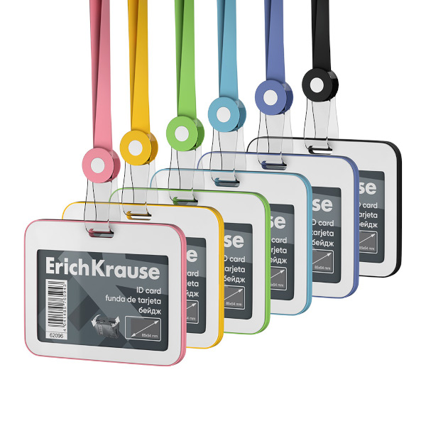 Бейдж 54*85мм горизонт., клип/шнур ассорти, пластик, ассорти 62096 Erich Krause (1шт)