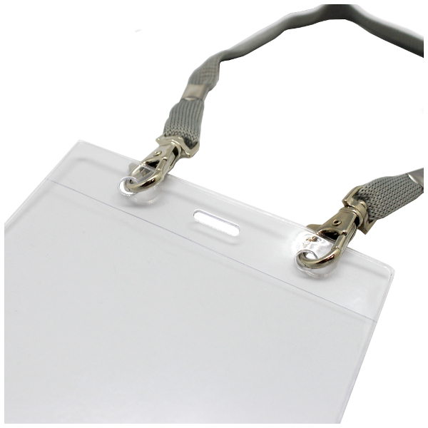 Бейдж 110*170мм вертикал., 2карабина/шнурок серый, пластик, прозрач. 3068.250-106 ДПС (1шт)