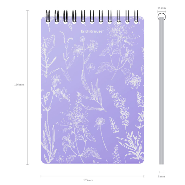 Блокнот А6 80л "Lavender" клетка, гребень, пластик.обл., рисунок 58331 Erich Krause