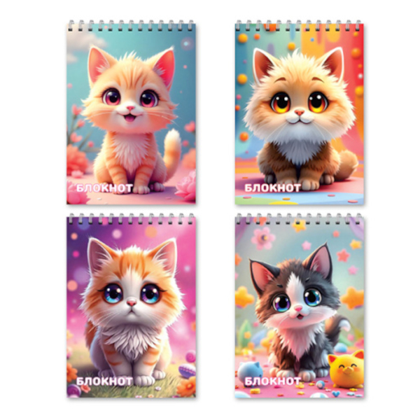 Блокнот А7 40л "Котята" клетка, гребень, мягк.обл., картон, ассорти M-17166 MAZARI ТМ