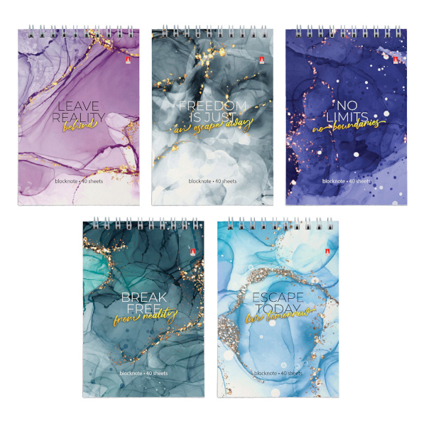 Блокнот А6 40л "Мрамор" клетка, гребень, мягк.обл., картон, ассорти 3-40-762 Bruno Visconti