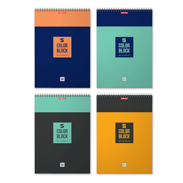 Блокнот А4 60л "Color Block" клетка, гребень, мягк.обл., картон, ассорти 49685 Erich Krause