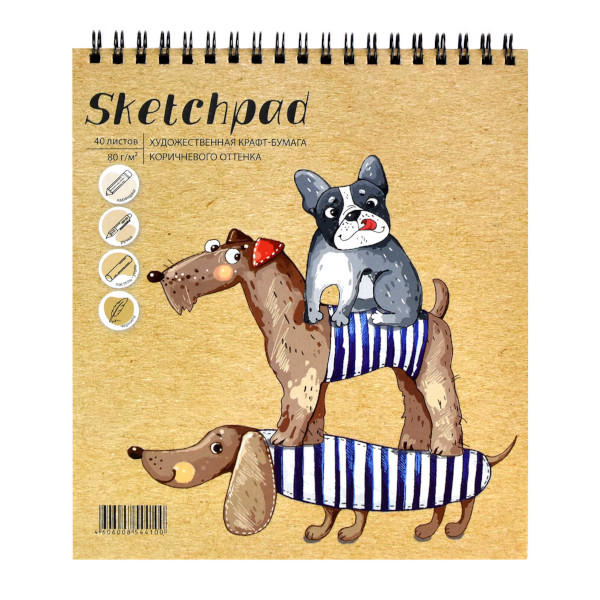 Скетчпад крафт листы 168*195мм 40л, 80г/м2, гребень "Смешные собаки" 61240 Феникс+