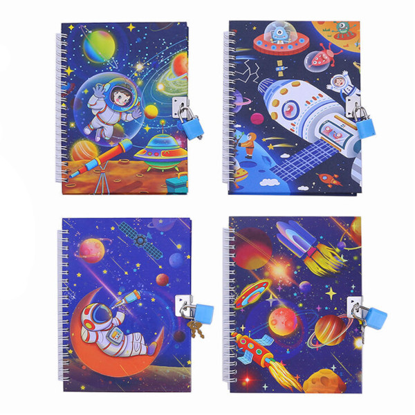 Блокнот 13*18см 48л "Космос" линейка, сшивка, тв.обл., картон, ассорти, замок M-9233 MAZARI