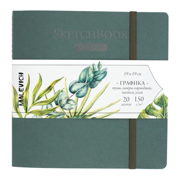 Скетчбук для графики и письма 190*190мм 20л, 150г/м2, сшивка "Flora" зеленый, рез 401215 Малевичъ