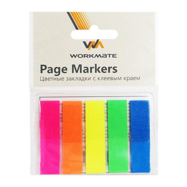 Набор самокл. закладок Workmate "Neon" 12*45мм пластик (5цв. по 25л) 14-5492