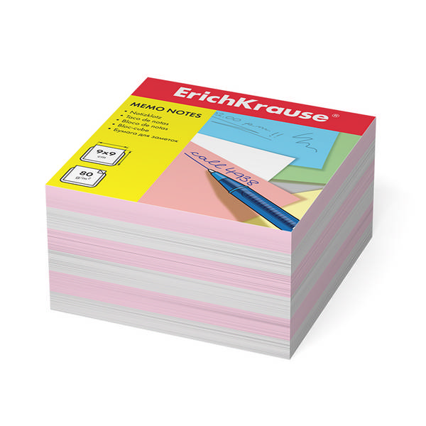 Блок для записей Erich Krause 90*90*50мм, белый/розовый, 80г/м2, белизна 98% ЕК2719