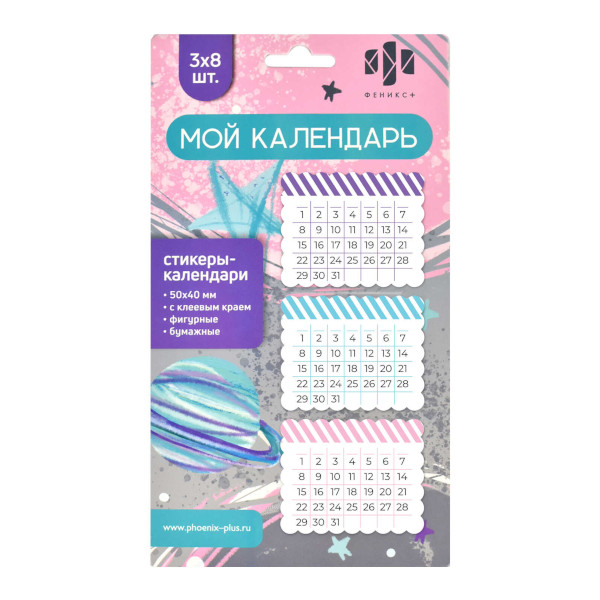 Количество цветов: 3 Доп. описание: Стикеры-календари бумажные, 50x40 мм, 24 ...