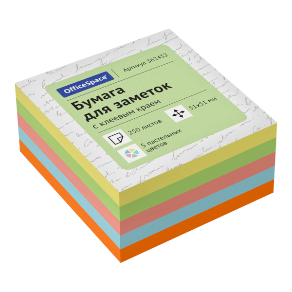 Липкий блок OfficeSpace 51*51мм 250л (5 пастел. цв. по 50л) 362432