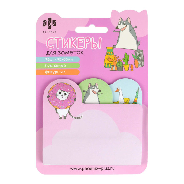 Липкий блок Феникс+ "Зверюшки" 85*95мм, 75л фигурн. (3цв*25л) 66580
