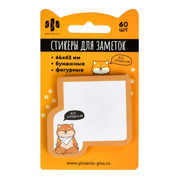 Липкий блок Феникс+ "Собака" 64*62мм, 60л, фигурный, рисунок 65170