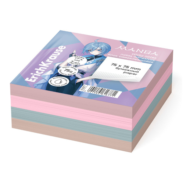Липкий блок Erich Krause "Manga" 75*75мм, 400л, цветной 61677