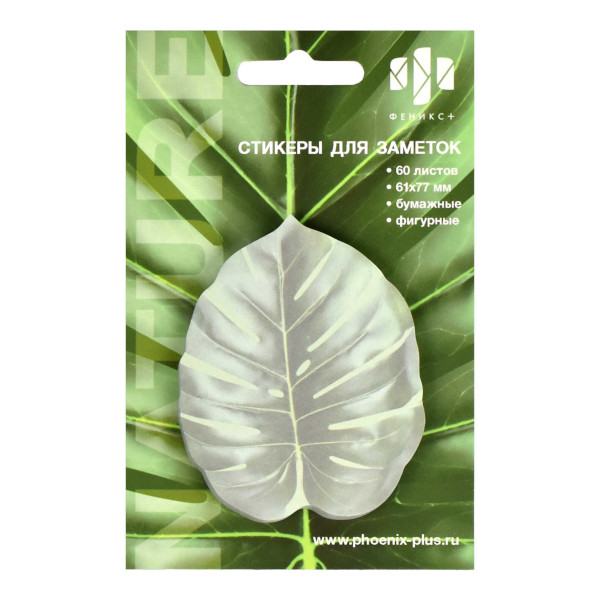 Липкий блок Феникс+ "Лист" 61*77мм, 60л, фигурный, рисунок 65160