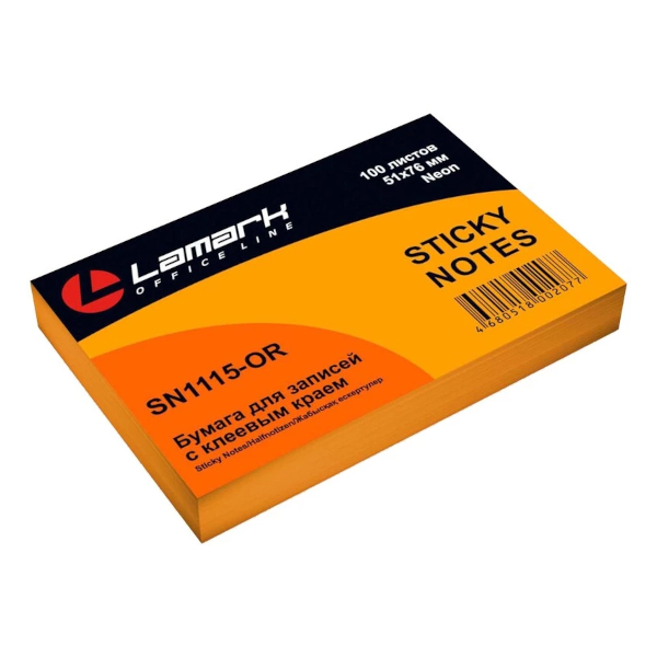 Липкий блок Lamark 51*76мм 100л неон оранжевый SN1115-OR