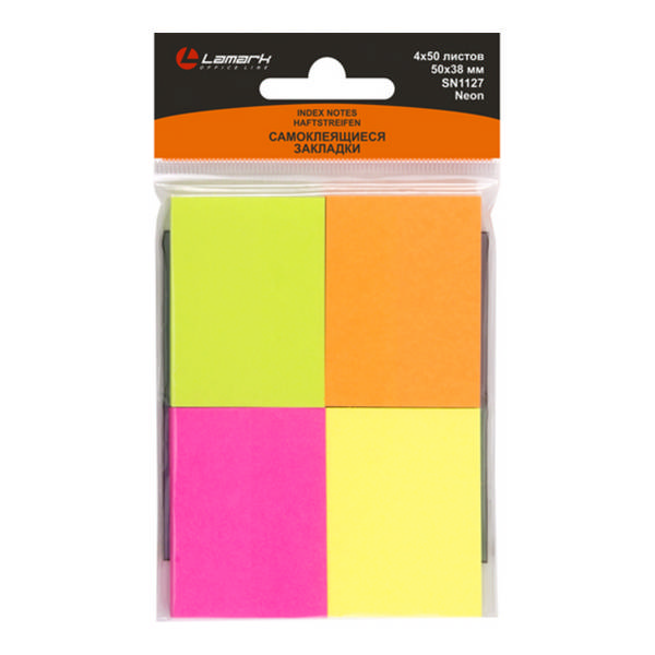 Липкий блок Lamark 38*50мм (4 неон. цв. по 50л), е/п SN1127/0127