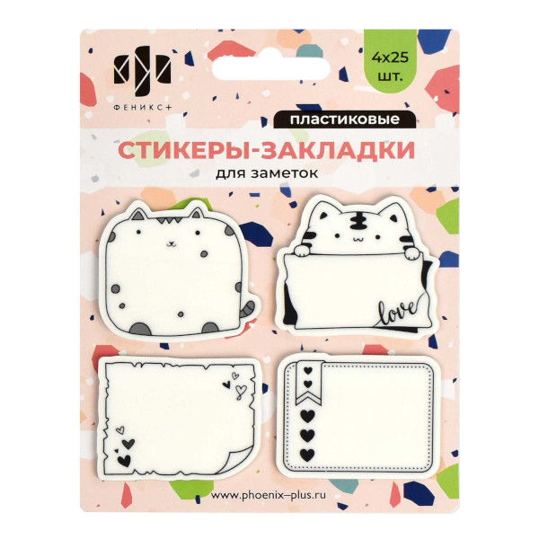 Набор самокл. закладок Феникс+ "Коты" 35*45мм/40*45мм, пластик (4 блока по 25л) 65183