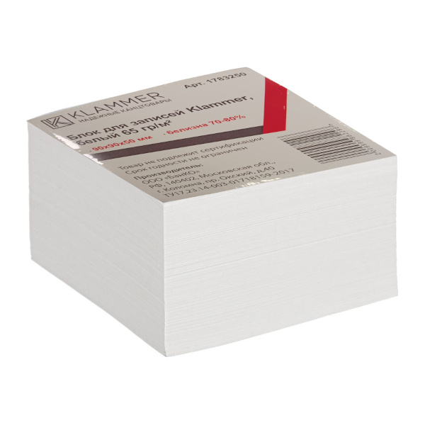 Блок для записей Klammer, 90*90*50мм, белый, 65г/м2, белизна 70-80% 1783250