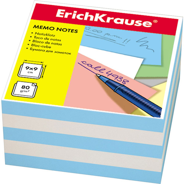 Блок для записей Erich Krause 90*90*50мм, белый/голубой, 80г/м2, белизна 98% ЕК2723
