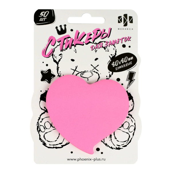 Липкий блок Феникс+ "Сердце" 85*80мм, 50л, фигурный, розовый 65174
