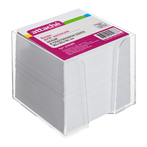 Блок для записей в пласт. боксе Attache 90*90*90мм, белый