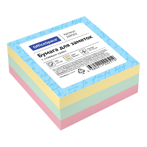 Липкий блок OfficeSpace 76*76мм 300л (3 пастел. цв. по 100л) 269563