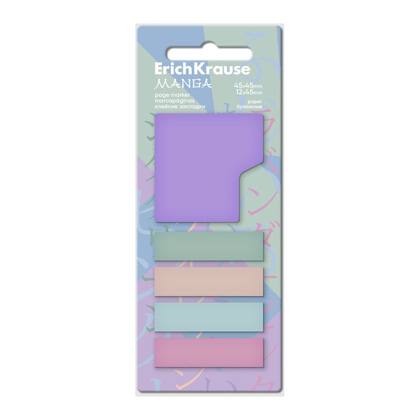 Набор самокл. закладок Erich Krause "Manga" 4бл*12*45мм, 1бл*45*45мм бумага (5цв. по 20л) 61589