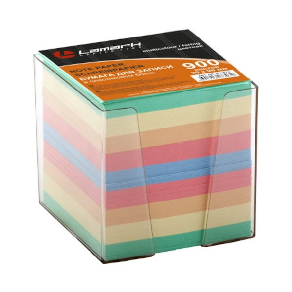 Блок для записей в пласт. боксе Lamark 90*90*90мм, цветной 73