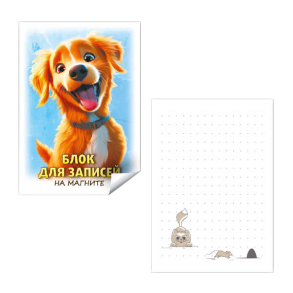 Блок для записей Квадра "Собака" 70*100мм, 30л, 65г/м2, в точку, магнит, склейка 9527