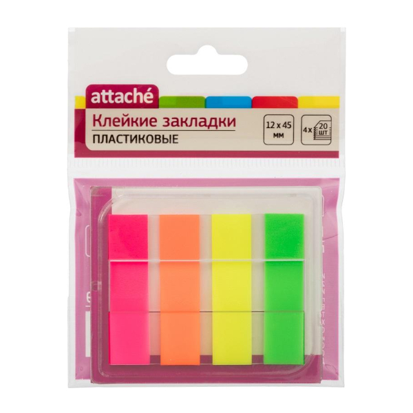 Набор самокл. закладок Attache 12*45мм, пластик, диспенсер (4 блока по 20л) 874309