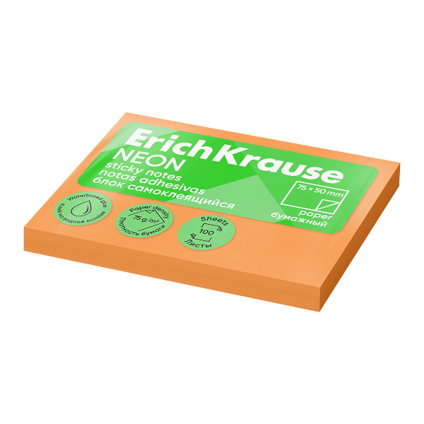 Липкий блок Erich Krause "Neon" 50*75мм, 100л, оранжевый 61695