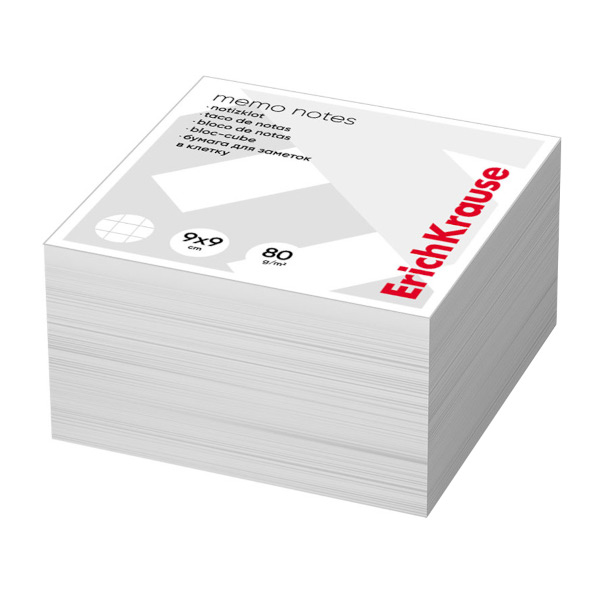 Блок для записей Erich Krause 90*90*50мм, белый, 80г/м2, белизна 98%, склейка 62116