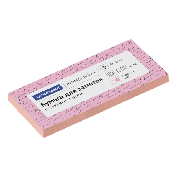 Набор липких блоков OfficeSpace 38*51мм (3 блока по 100л), пастель розовый 362440