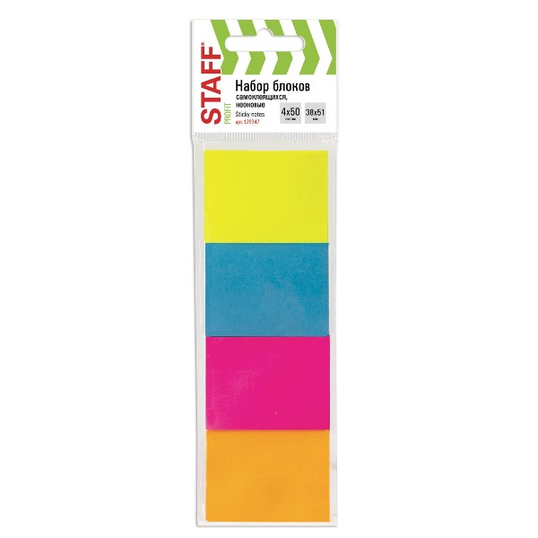 Набор липких блоков Staff 38*51мм 50л 4 неон. цветов 129347