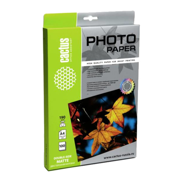 Бумага А4 Cactus для стр.пр. 190г/м2, матовая, двусторонняя CS-MA4190100DS (100л)