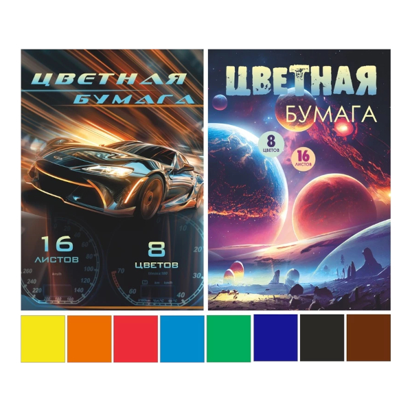 Бумага цветная немелованная А4 16л/8цв, скоба "Главная дорога/Галактика" 00827 Lamark