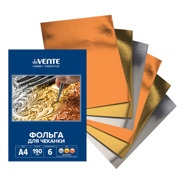 Фольга для чеканки А4 6л/3цв, ассорти, папка 8118500 deVENTE