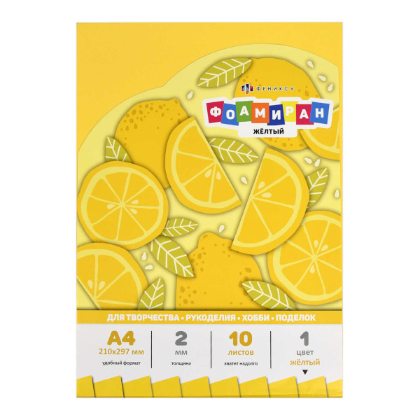 Пористая резина (фоамиран) А4 "Желтый" 10л/1цв, 2мм 65987 Феникс+