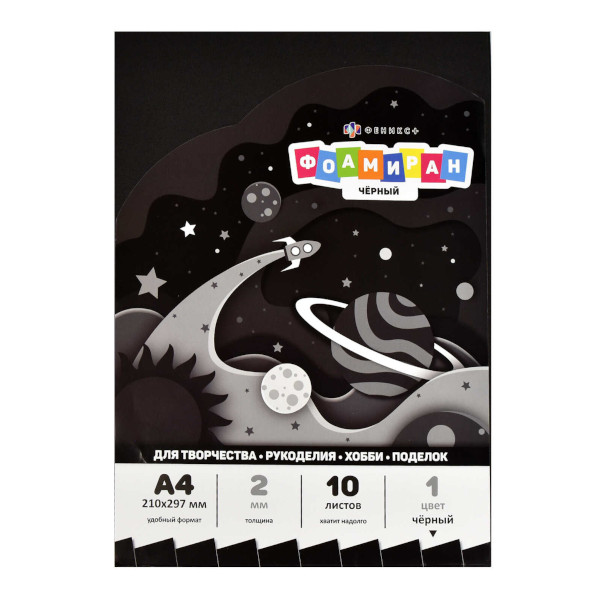 Пористая резина (фоамиран) А4 "Черный" 10л/1цв, 2мм 65994 Феникс+