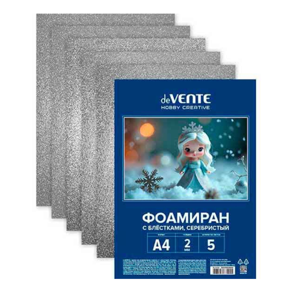 Пористая резина (фоамиран) А4 5л/1цв "Серебристый. Блестки" 2мм 8112416 deVENTE