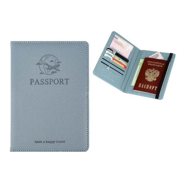Обложка для паспорта "Гражданин" иск.кожа, голубой, резинка ОП-9633 Миленд