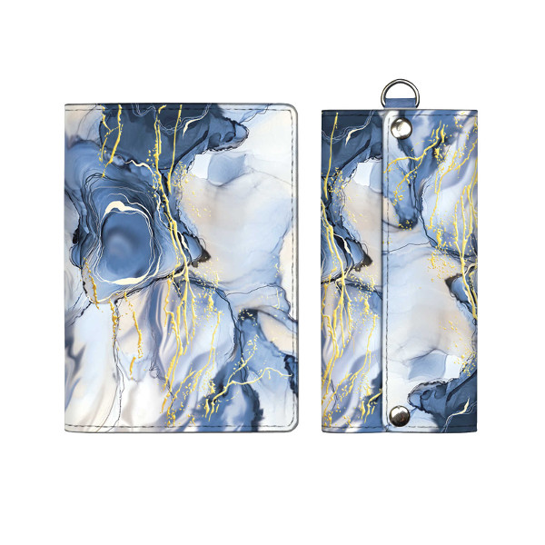 Обложка для паспорта + ключница "Наппа. Синий мрамор" кожзам 57741 Escalada