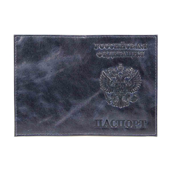 Обложка для паспорта "РОССИЯ-ПАСПОРТ-ГЕРБ" нат.кожа, тиснение, темно-синяя 1,01гр-ПАРУС-226 Imige